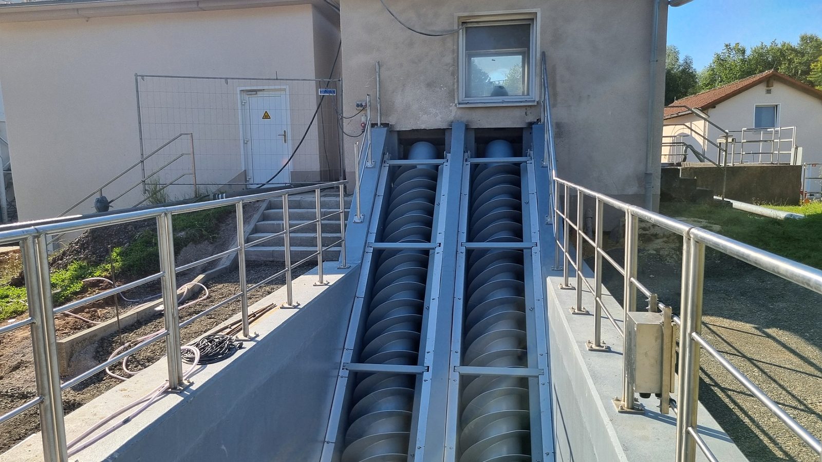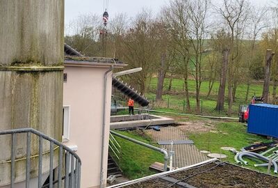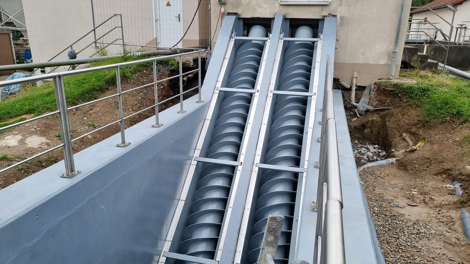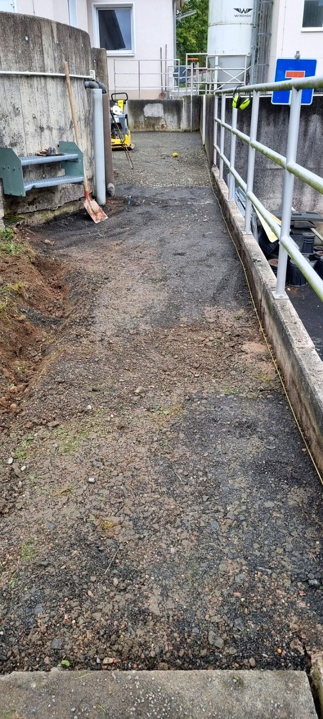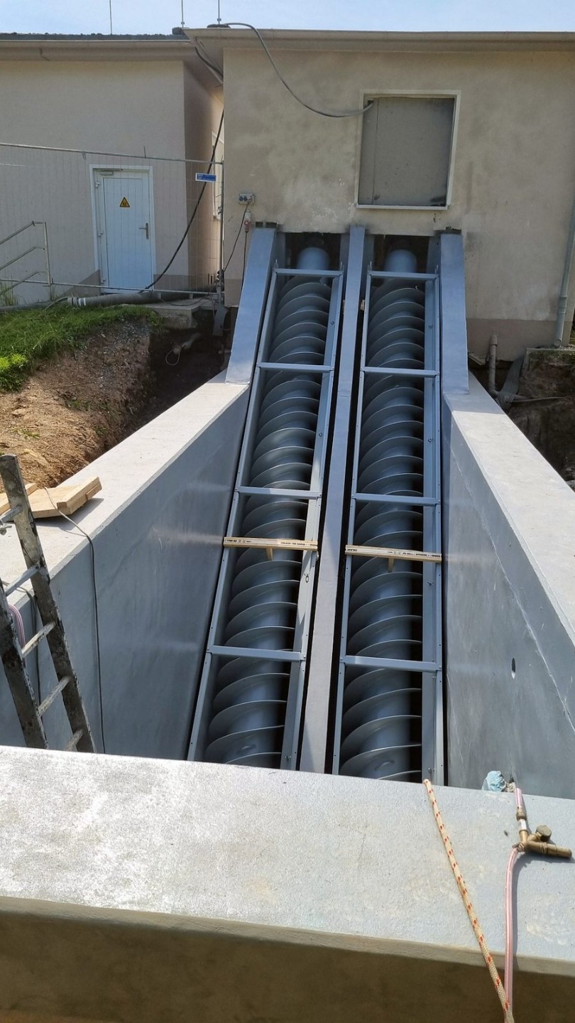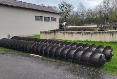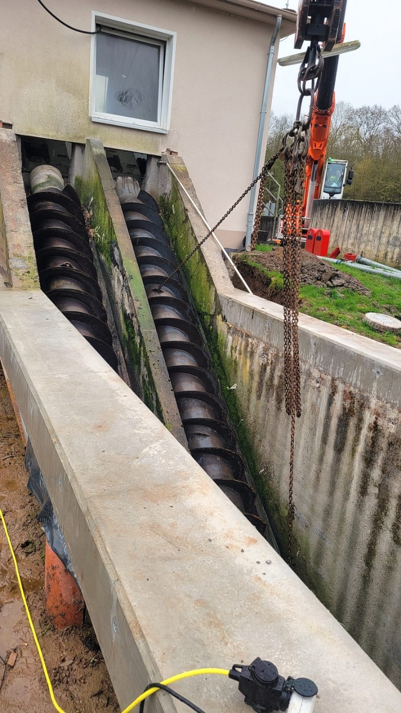 Ing.-Büro HIFU, Clausthal, hat die Planung und Bauüberwachung. Die Bauausführung liegt bei den Firmen RST, Lenglern und Landustrie, Sneek, NL. Der Bau ist fast abgeschlossen. Die Umleitungen für das Schmutzwasser wurden von den MA verlegt. Natürlich wurden alle Pumpen sicherheitstechnisch gegen Ausfall und Überlastung überwacht. Die Firma RST hat bis zum 19.12.23 den Betonkranz des Einlaufbauwerks verstärkt. 800 kg Stahl wurden im Kranz eingebaut. Die Innen- und Außenwände wurden von Fa. Scheurer bis auf die Armierung herunter sandgestrahlt und danach neu verputzt. Diese Arbeiten zogen sich etwas und haben 1 Woche Verzögerung gebracht. Hinzu kam das dringend notwendige zusätzliche Einziehen von 2 Inlinern in 2 SW-Kanalstücke vor dem RAWPW, das hat auch noch 1 Woche und 25T€+ an Kosten gebracht. Die Schnecken wurden Anfang August eingebaut. Es wurden noch 2 Schächte mit Innenverkleidung versehen und eine Rohrleitung neu verlegt. Die Elektrotechnik wurde von Fa. Zitron installiert. Die Rohrumleitungen wurden abgebaut und die Außenanlagen um das Bauwerk wurden von RST fertiggestellt. Die notwendigen Malerarbeiten sind beauftragt und werden in das Jahr 2025 verschoben.