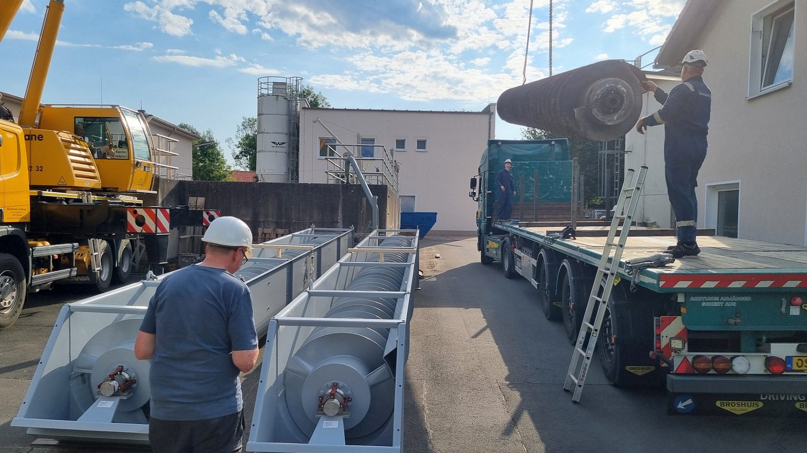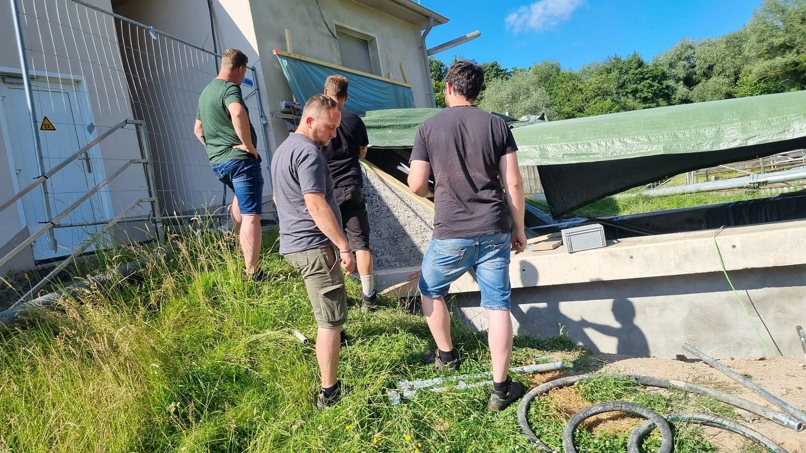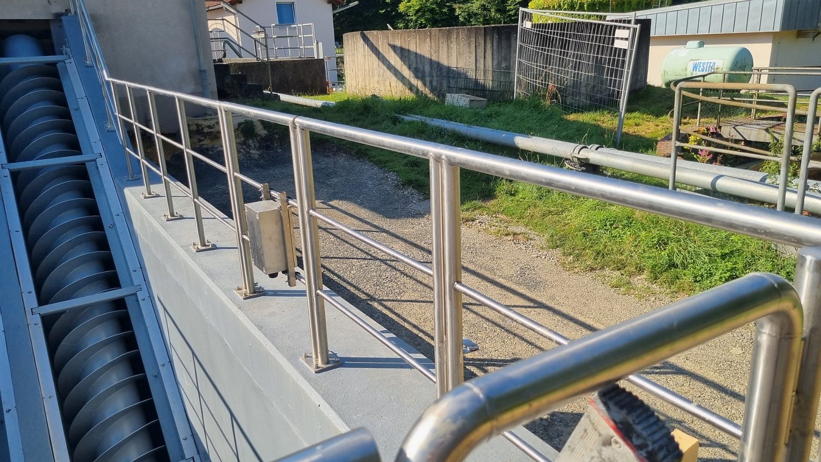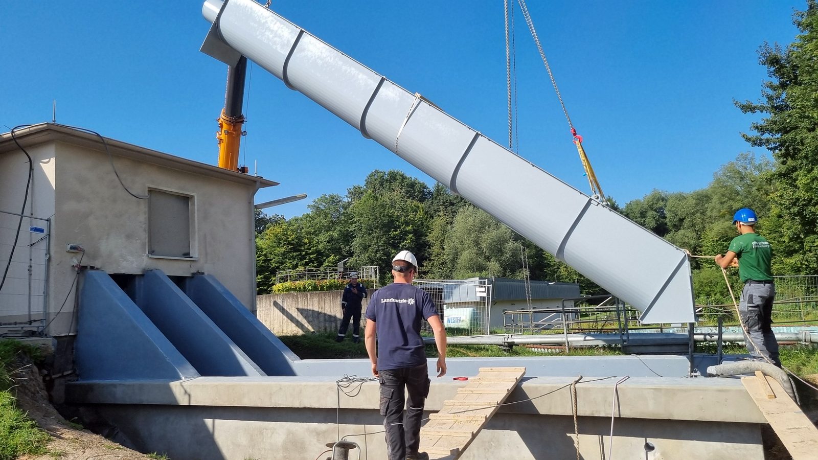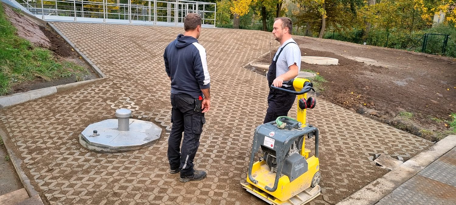 Ing.-Büro HIFU, Clausthal, hat die Planung und Bauüberwachung. Die Bauausführung liegt bei den Firmen RST, Lenglern und Landustrie, Sneek, NL. Der Bau ist fast abgeschlossen. Die Umleitungen für das Schmutzwasser wurden von den MA verlegt. Natürlich wurden alle Pumpen sicherheitstechnisch gegen Ausfall und Überlastung überwacht. Die Firma RST hat bis zum 19.12.23 den Betonkranz des Einlaufbauwerks verstärkt. 800 kg Stahl wurden im Kranz eingebaut. Die Innen- und Außenwände wurden von Fa. Scheurer bis auf die Armierung herunter sandgestrahlt und danach neu verputzt. Diese Arbeiten zogen sich etwas und haben 1 Woche Verzögerung gebracht. Hinzu kam das dringend notwendige zusätzliche Einziehen von 2 Inlinern in 2 SW-Kanalstücke vor dem RAWPW, das hat auch noch 1 Woche und 25T€+ an Kosten gebracht. Die Schnecken wurden Anfang August eingebaut. Es wurden noch 2 Schächte mit Innenverkleidung versehen und eine Rohrleitung neu verlegt. Die Elektrotechnik wurde von Fa. Zitron installiert. Die Rohrumleitungen wurden abgebaut und die Außenanlagen um das Bauwerk wurden von RST fertiggestellt. Die notwendigen Malerarbeiten sind beauftragt und werden in das Jahr 2025 verschoben.